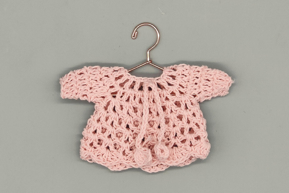Baby pink knit crochet mini sweater with cute drawstrings, baby shower favors, event favors, crochet favors, newborn favors, Set of 6