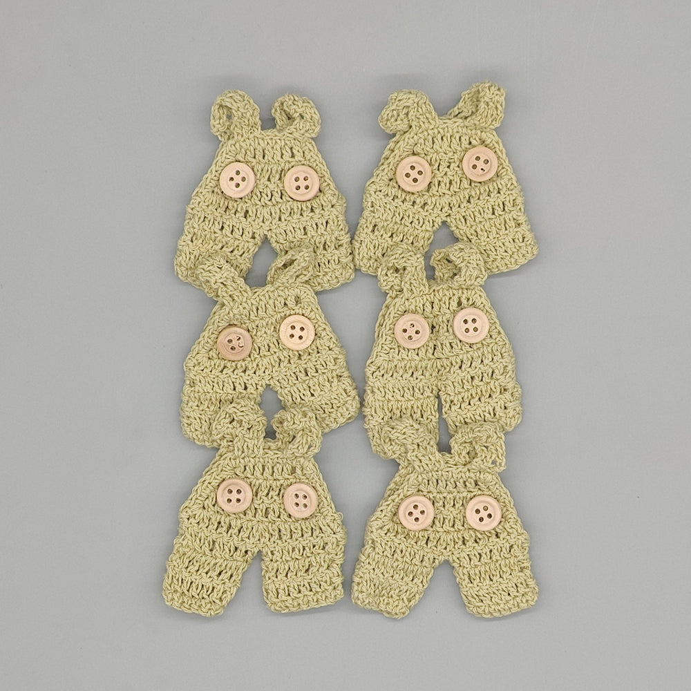 Crochet Baby Overalls Favors - Sage Green, Set of 6