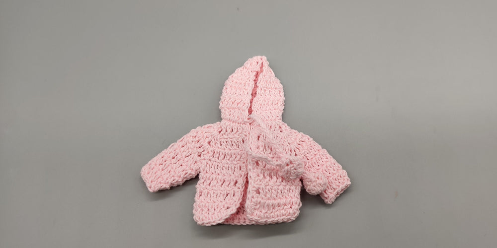 Crochet mini hoodie jacket, baby pink with hoodie, cute favors, baby shower, baby welcome, crochet favors, baby shower favours, Set of 4