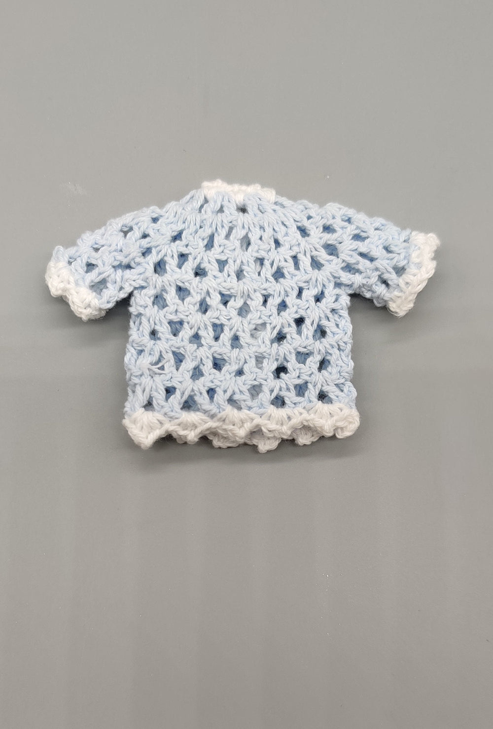 Crochet mini jacket, baby blue with white trim, cute favors, baby shower, baby welcome, crochet favors, baby shower favours, Set of 6
