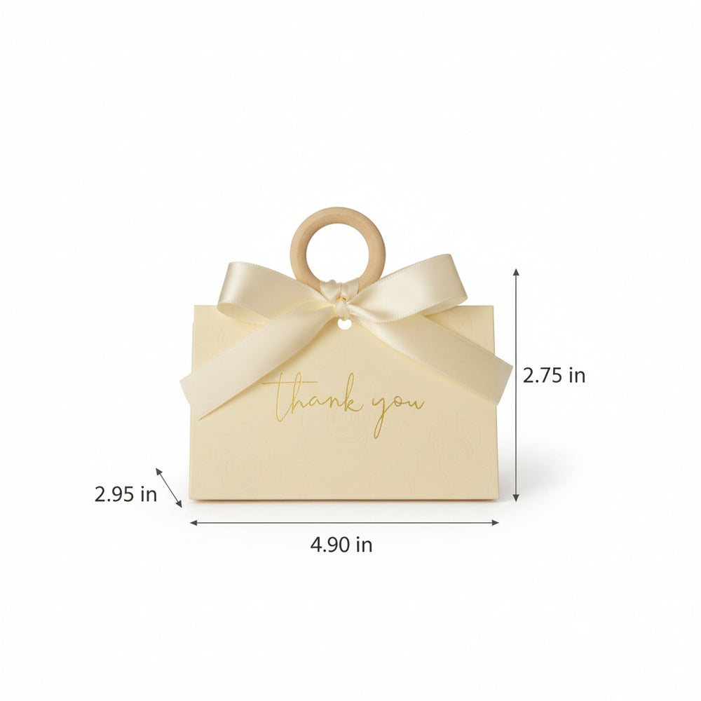 Featuring a chic creamy color, a gorgeous ribbon bow 🎀, and a sweet "Thank You" tag, these boxes are pure elegance. But the real showstopper? The unique wooden handle on top! 🪵 It adds such a high-quality, rustic-chic vibe that everyone will adore. 😍