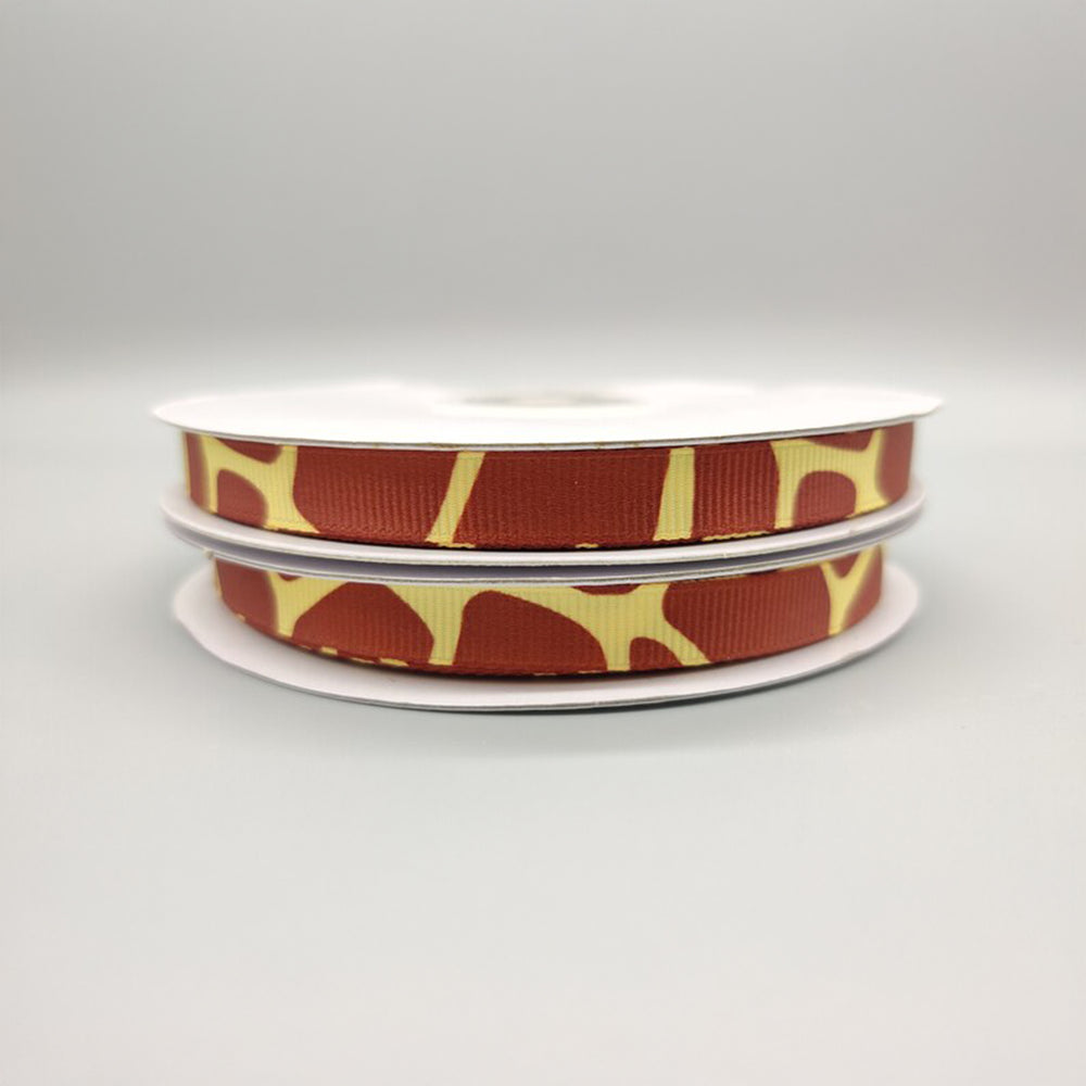 Giraffe Ribbons - Giraffe Pattern Ribbons - 25 Yards - Choice of 2 sizes - 3/8 in x 25 yards OR ~1 in x 25 yards - Grosgrain Ribbon Each roll is a generous 25 yards long. Choose from one of 2 sizes (widths):