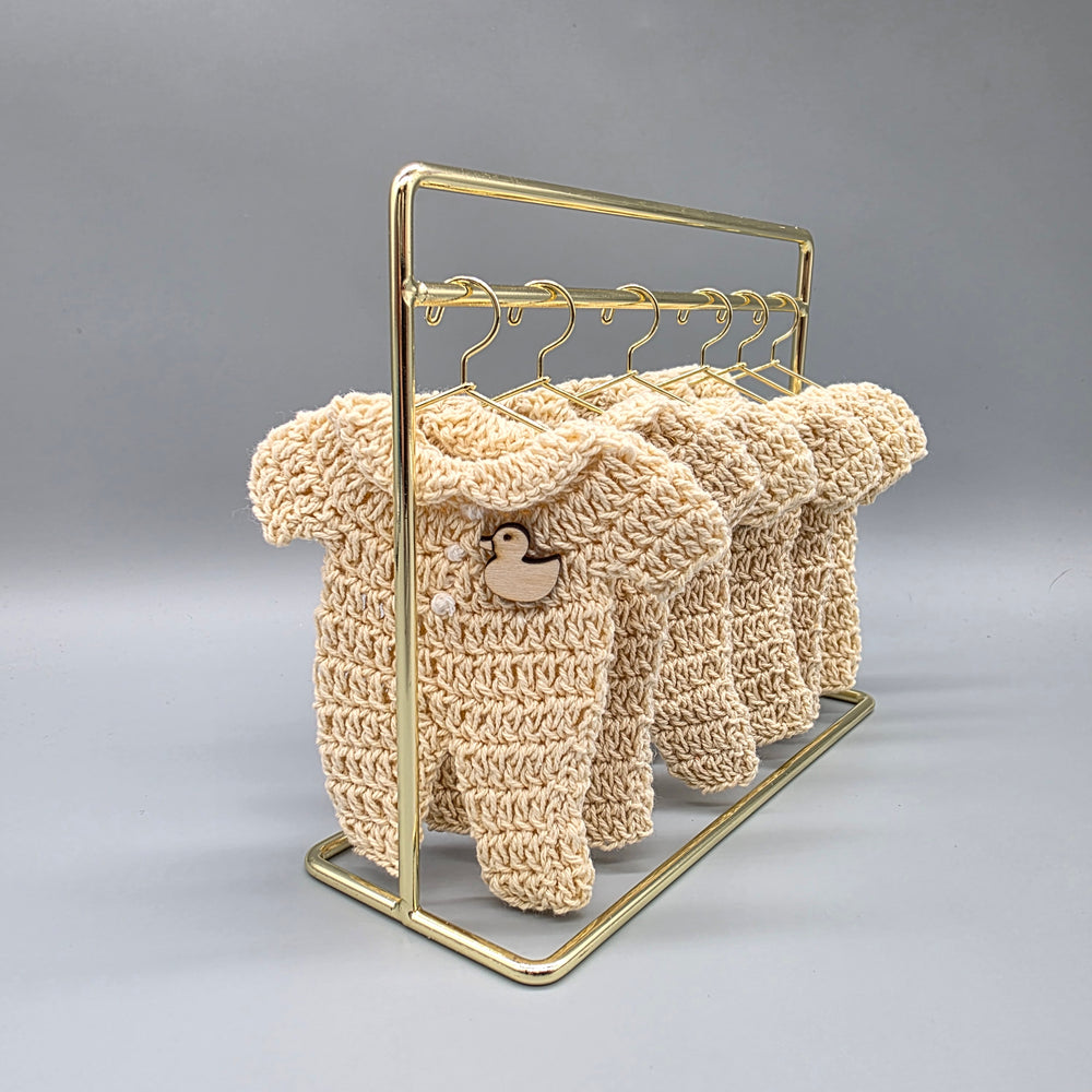 Are you looking for a unique and adorable baby shower favor that will leave your guests oohing and aahing? Look no further! These tiny, handcrafted crochet onesies are the perfect way to celebrate your little one on the way. Each one is a charming, keepsake-quality piece made with love and attention to detail and has a cute little laser cut duckie on the heart side of the favor.
