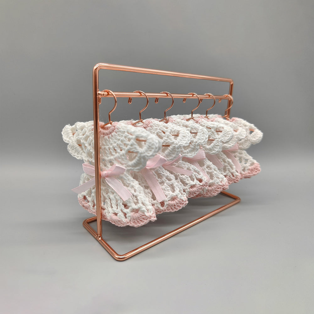 Set of 6 - Baby Dress, Baby shower favors, Baby Pink, Crochet mini dress, cute party favors, quinceanera; hanger with rack option available