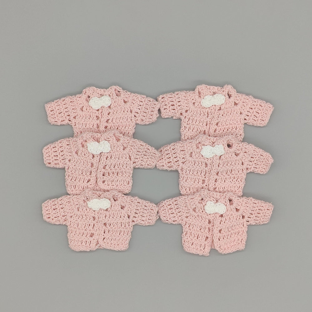 Set of 6 Mini Crochet Baby Jackets in Baby Pink with White Flower & Drawstrings - Shower Favors, Keepsakes, Party Decor