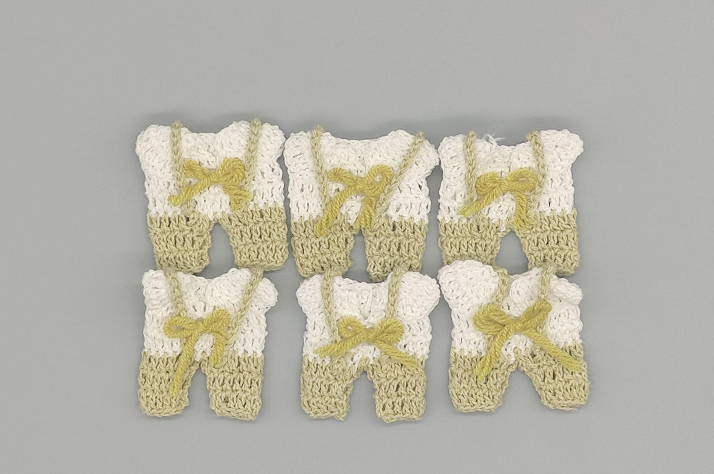 Welcome your little bundle of joy with a touch of handmade charm! 💚 These adorable mini crochet baby overall favors are the perfect, heartfelt addition to your baby shower, gender reveal, or baby welcome party. Each little outfit is meticulously hand-stitched in sage green and white yarn, complete with a sweet little bow tie-a true labor of love to celebrate a new life. They're so cute, your guests will be "oohing" and "ahhing" over every tiny stitch!